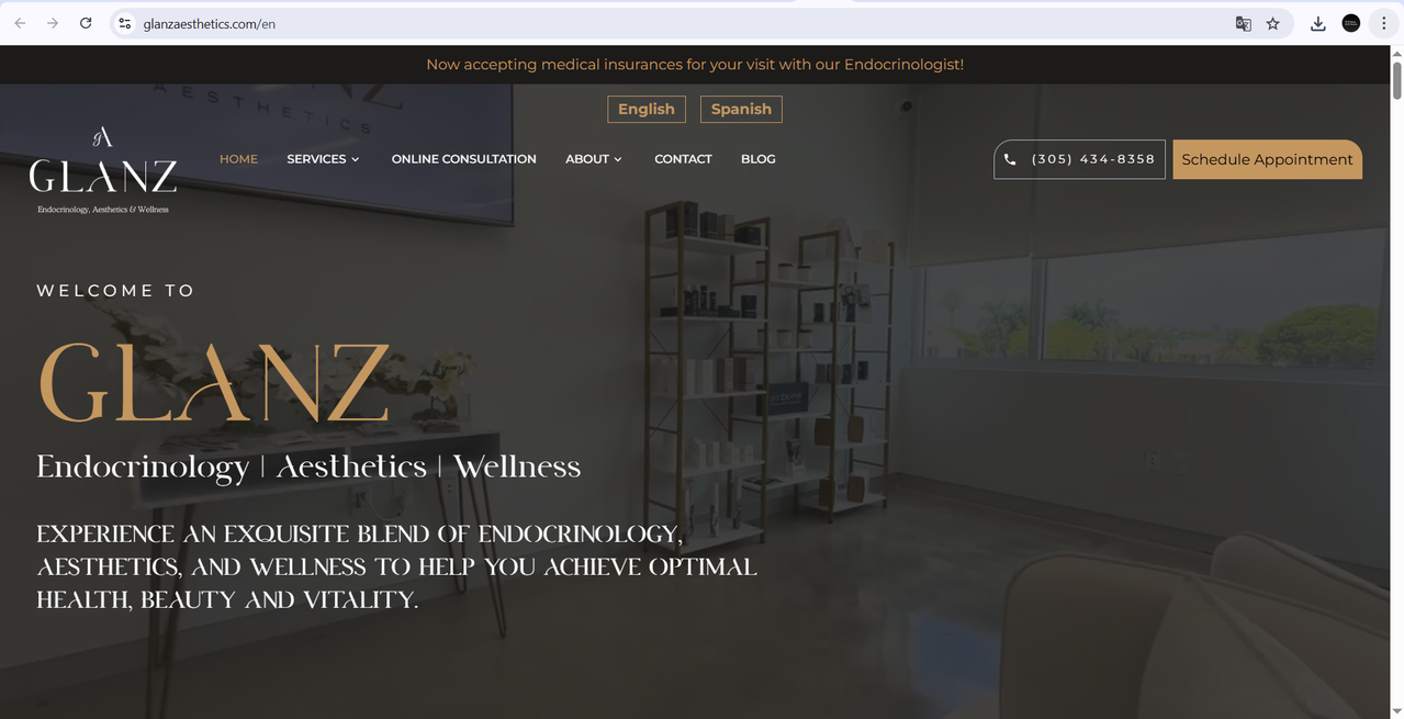 Glanz Aesthetics is a premium wellness and aesthetics clinic offering a curated range of treatments — from advanced skin therapies to holistic wellness programmes. With a discerning clientele and an atmosphere built on calm and confidence, they needed a digital presence that could communicate both the clinical expertise and the personal warmth behind every visit.